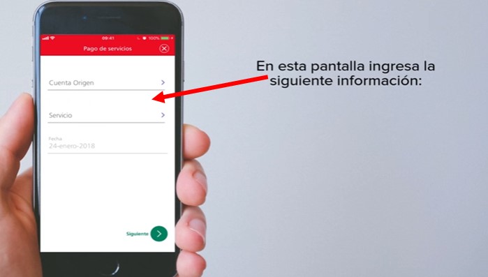 En la siguiente pantalla tienes que ingresar información de cuenta de origen, el servicio que has de pagar, importe del pago, fecha de vencimiento