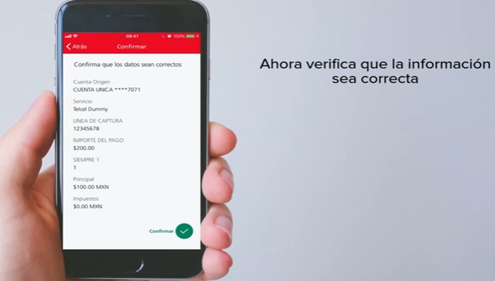 En la pantalla aparecen los datos del servicio que vas a pagar y la cantidad